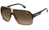 These full-rim navigator sunglasses infuse Carrera's sport-style spirit and vintage appeal with a dose of urban attitude — perfect for men who want to be spotted on the streets. The oversized square silhouette features an injected plastic front and temples and comes complete with UV-protective polycarbonate lenses to shield your eyes from harmful rays. Notice the label’s logo engraved in low relief on each temple and centre and the C-logo positioned discreetly inside the left end-tip