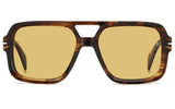 These Eyewear by David Beckham sunglasses captivate with bold, sculpted frames and beveled profiles around the lenses, embodying an inimitable elegance that truly stands out. Crafted with exceptional attention to detail, they boast flawless finishes and rich, uniform colors. The distinctive navigator silhouette, especially in the version with vibrant orange lenses,
