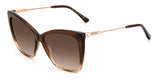 The Jimmy Choo London eyewear collection comprises a selection of best-selling silhouettes, updated with gradient tones and glistening Swarovski crystals as a glamorous celebration of the brand's seductive allure. Exuding a versatile elegance perfect for everyday wear, these statement cateye sunglasses pair an acetate front with ultra-lightweight metal temples, engraved with logo lettering for a signature finish.