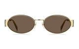 An ode to contemporary elegance, these women's sunglasses perfectly fuse functionality and style. Seemingly minimalist from the front, the sleek metal design reveals the laser-etched Marc Jacobs logo along the top bar and ultra-bold wide temples engraved with the brand's signature, creating a striking impression. Finished with acetate end tips, adjustable nose pads and logo lettering on the left lens, the discreet metallic colourways ooze urban glamour.