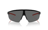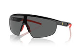 Shielded by style, this oversized mask silhouette takes a dramatic wraparound cut, exploring colour contrasts through contrasting coloured and mirror lenses. Rubber nosepads and temple tips add an athletic sensibility, while the legendary Scuderia Ferrari logo recalls the brand’s racing heritage.