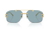 Opulent metal temples and a rimless construction combine in this oversized, masculine style. Featuring the refined Damier pattern, a bold double bridge and a distinctive logo plaque, this unisex model exhibits Versace’s trademark attention to detail in a typically luxe style.