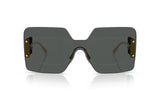Innovative and audacious, Versace delivers show-stopping style with this oversized mask construction. From the painted logo plaque framed with a Damier pattern to the exposed design elements and elemental color pallet, this avant-garde look is guaranteed to turn heads.