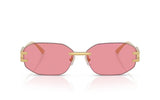Recalling the narrow shape of the best-selling Biggie, this rimless style exudes unisex appeal. The metal construction delivers a modern look while the refined Damier pattern and logo plaque adds distinctive Versace flair. Pair with gold mirror, pink or dark blue lenses for a contemporary style.