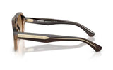 Pilot sunglasses shaped from bio-based acetate. The innovative layered design reveals a polished metal core at the temples engraved with Burberry logos and brand hallmarks. The bio-based acetate used for the frame contains at least 50% bio-based content derived from plant-based renewable resources.