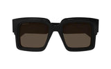 Gucci GG1307S , the oversized square shape reinterprets the web in an abstract way through the use of acetates and colors. The gold-colored metal GG interlocking logo on both temples ensures a timeless Gucci look with a sophisticated touch.